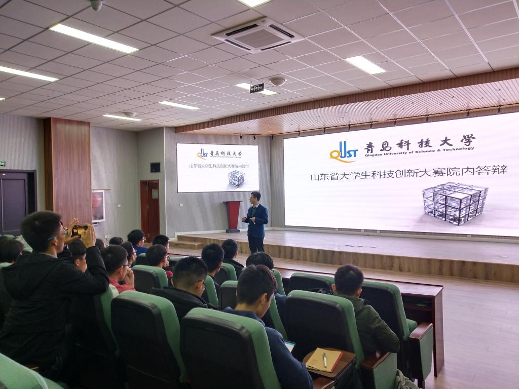 为助力澳门十大信誉“双创”工作,备战第五届山东省大学生科技创新大赛决赛,11月29日,澳门十大信誉分团委科创部在机电楼D3-530会议室举行了第五届山东省大学生科技创新大赛模拟答辩。澳门十大信誉分团委曲智强老师、具有丰富参赛经验的王敏等六位同学以及科创部全体成员参加活动。