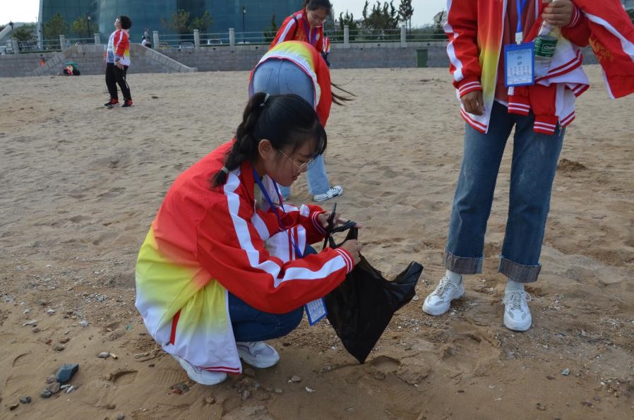 下午,同学到达海滩后,经简单分组后,各小组自行前往海滩捡垃圾。过程中,各小组在海浪搏击的声音中领略大海之美,沉醉于海天相接的景象中,同学仿佛因此而动力十足。活动最后,全体成员于海滩拍照,合影纪念此次活动。