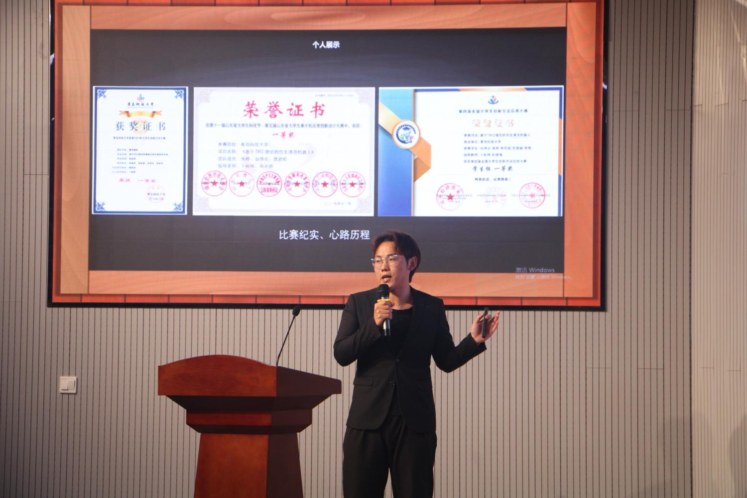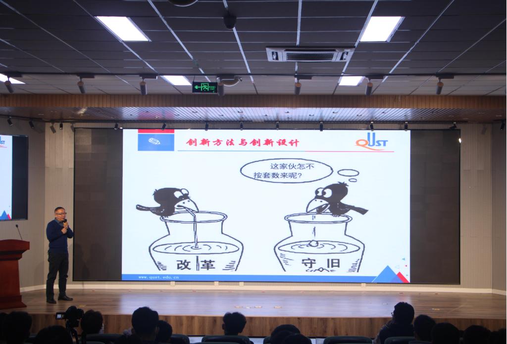 此次讲座以围绕TRIZ创新方法为主题,卜秋祥老师以家喻户晓的“乌鸦喝水”的故事为喻,讲解了创新思维和传统思维的不同以及创新方法的重要性,创新方法源于经典,却远超于经典。同时卜老师号召同学们为锻炼TRIZ创新方法,必须落实“保持空杯心态”、"项目驱动式学习"、"保持专注,厚积薄发"、"以赛促练,以练促学"的学习方法。随后谷伟长同学分享了自己的参赛经验,备赛的过程中会遇到很多挫折、困难,要保持求真务实、埋头苦干的态度才是成功的关键,比赛最重要的是扎实去做,认真去做,突破传统,并鼓励同学们认真备战明年比赛。至此,活动在同学们热烈的掌声中圆满结束。