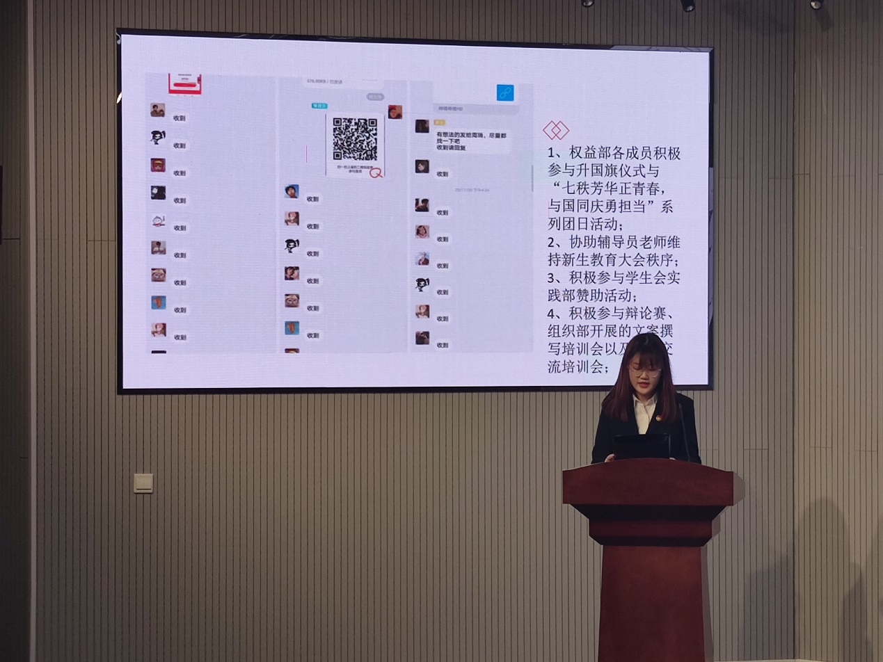 会议第二阶段,为全面落实2020-2021学年度第一学期澳门十大信誉学生会的工作开展情况,各部门针对本部的工作情况面向学生会全体同学进行述职汇报 。