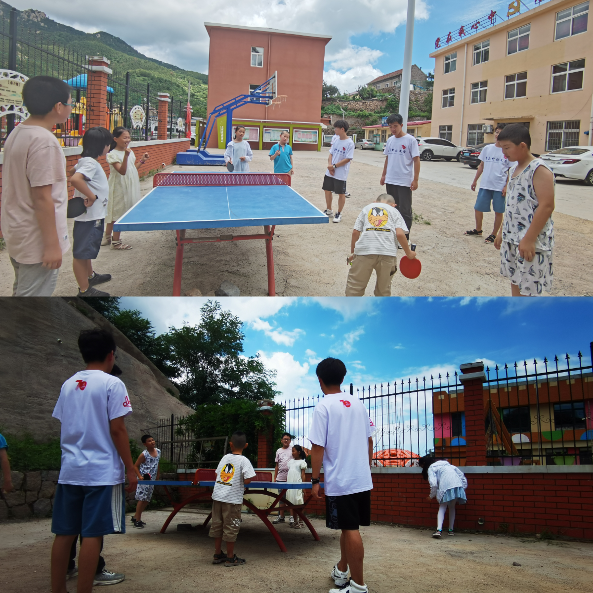 体育实践,感悟精神。为了让孩子们传承“爱体育,兴中华”的体育精神,乡村振兴团成员张宇昂同学与小朋友们进行了乒乓球友谊赛。在汗水的挥洒与充满激情的实践中,让小朋友们明白,乒乓球中所蕴含的体育精神。正如伟大的党,虽历经百年风雨,却仍旧蓬勃发展。