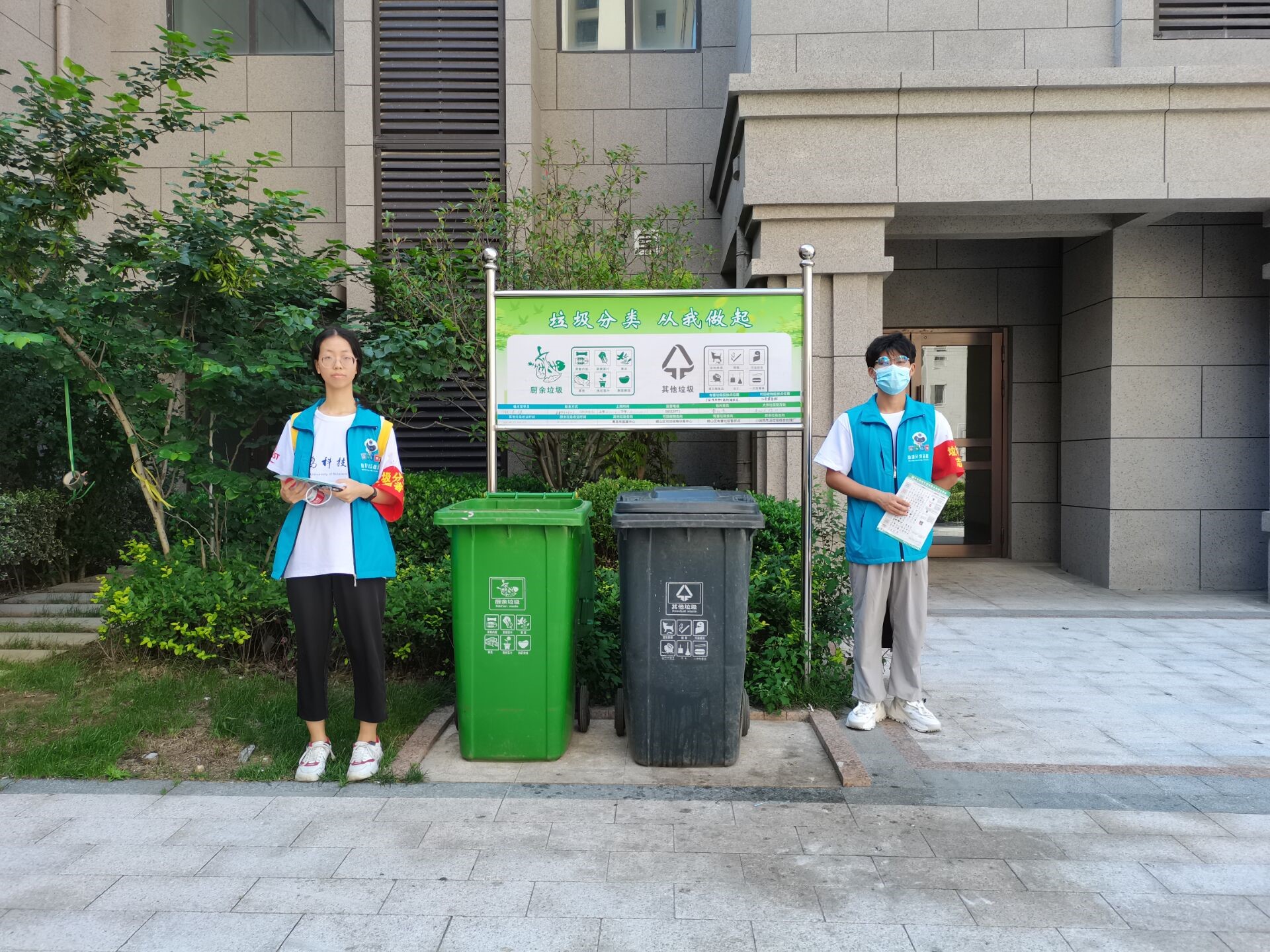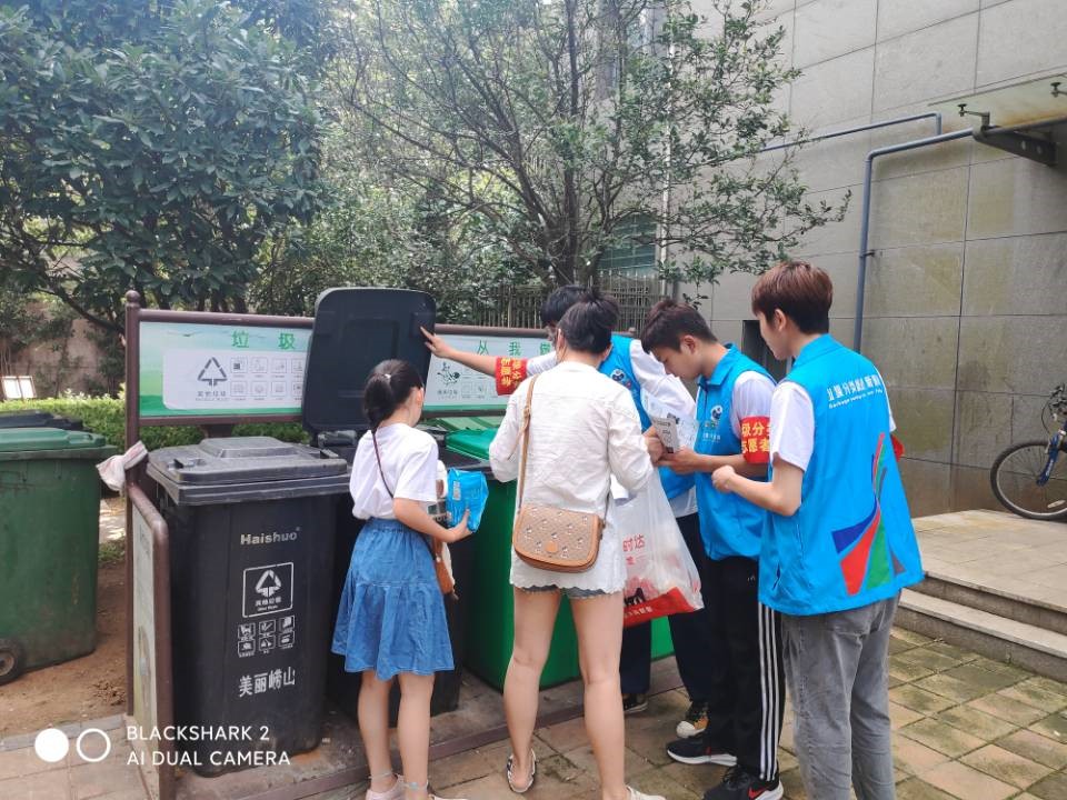 通过在展馆的参观学习,队员对垃圾分类知识有了比较系统完备的知识基础,为进一步推动青岛市的垃圾分类进程、提高社区居民的垃圾分类意识,2021年7月19日,澳门十大信誉好的网站赴崂山区中韩街道“垃圾分类我先行”志愿服务团队员于多个社区内的垃圾桶旁对居民进行了垃圾分类驻桶引导。