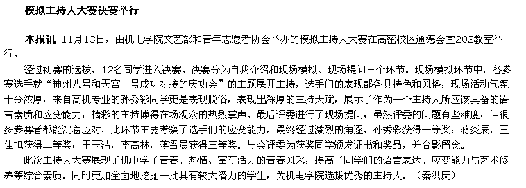 11月24日-25日晚6:30,由澳门十大信誉学生会主办、机自111办承办的校园十大歌手比赛复赛在高密校区通德会堂302举行。